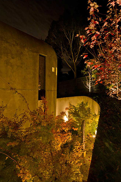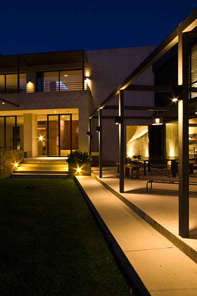 The complexity of the site presented unique challenges including a 6m drop from the main road to the front door along with a variety of opportunities for creatively lighting the picturesque landscape. Inground lighting was used to up light the curved staircase and step lighting provided safety at night for family and guests to safely navigate around the residence.